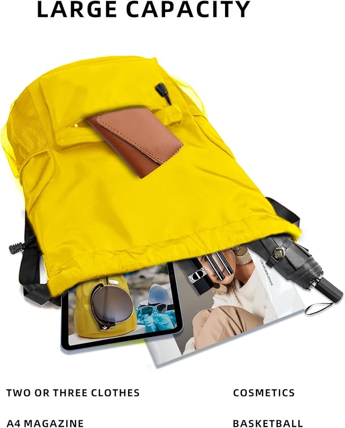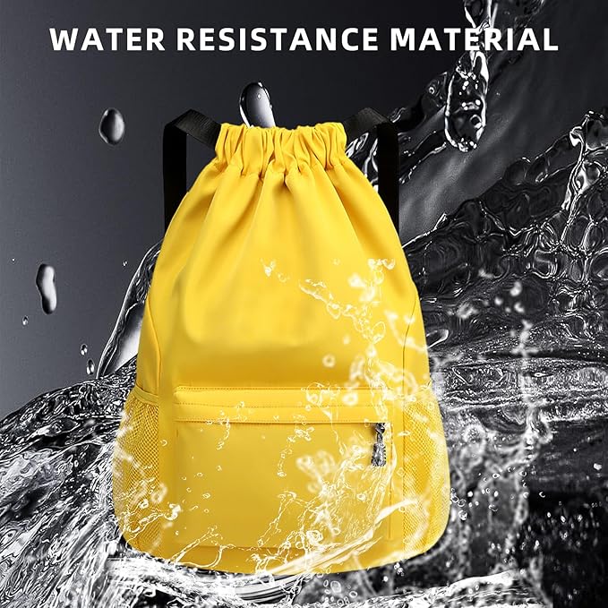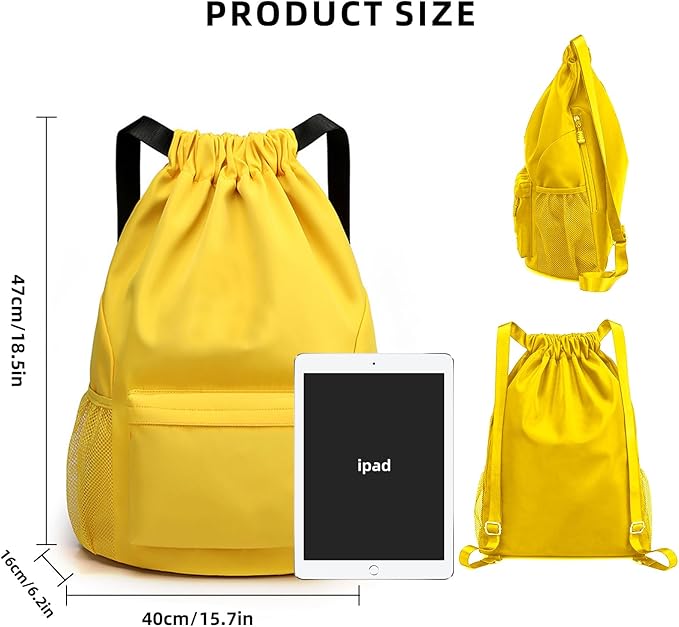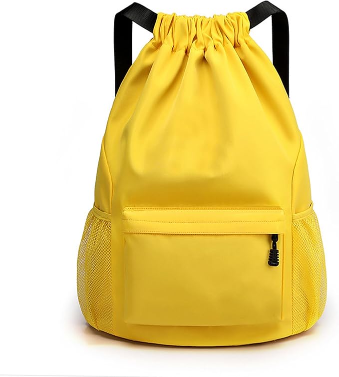 Sports Drawstring Backpack String Swimming Gym Bag Backpack with Shoes Compartment and Pocket for Men Women (yellow)