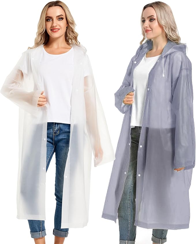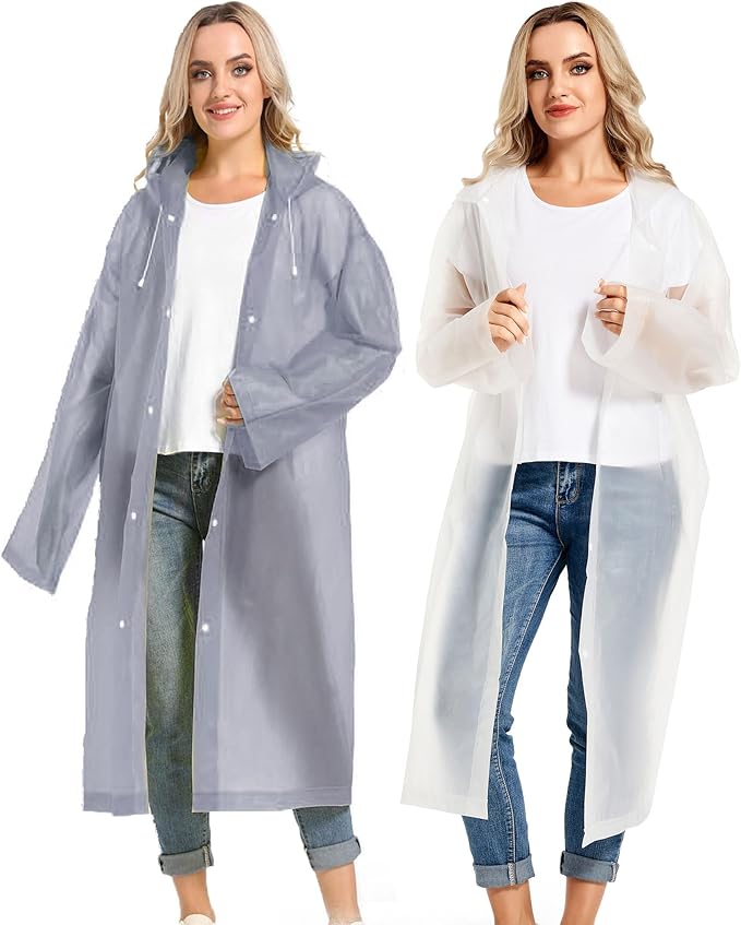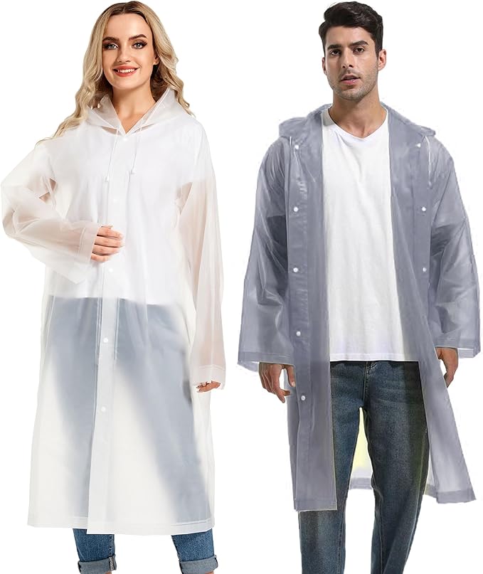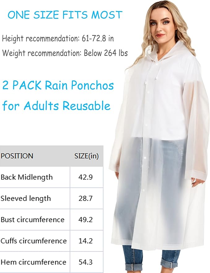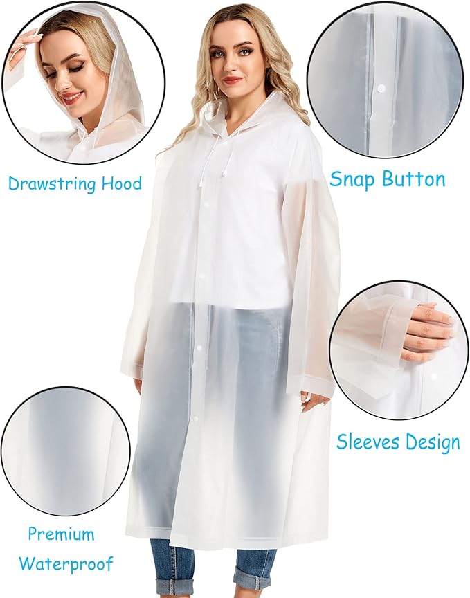 • 【PERFECT FITS MOST】Our rain poncho with long sleeves, quality button and big hood drawstring design is perfect for men, women, youth and teens,one size fits most,full-length reusable rain coat with a drawstring hood and long sleeves ensure water does not get in, a rain gear won't stick you but keep you dry