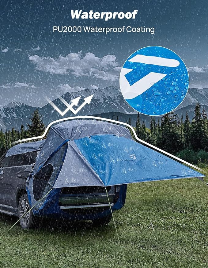 - 【UV Block and Water Resistant】: The JOYTUTUS SUV tailgate tent is made of 150D polyester oxford and features a PU2000 coating, making it a reliable shelter for outdoor camping, rain or shine