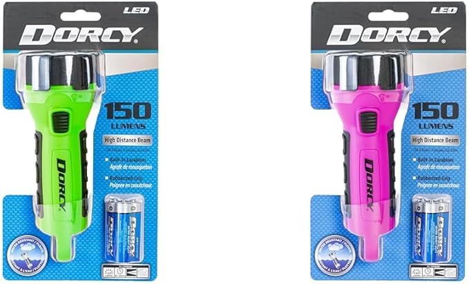Dorcy 150 Lumen and 55 Lumen Floating Water Resistant LED Flashlights with Carabineer Clips Bundle (41-2513, 41-2509)