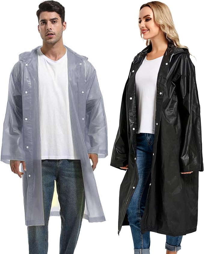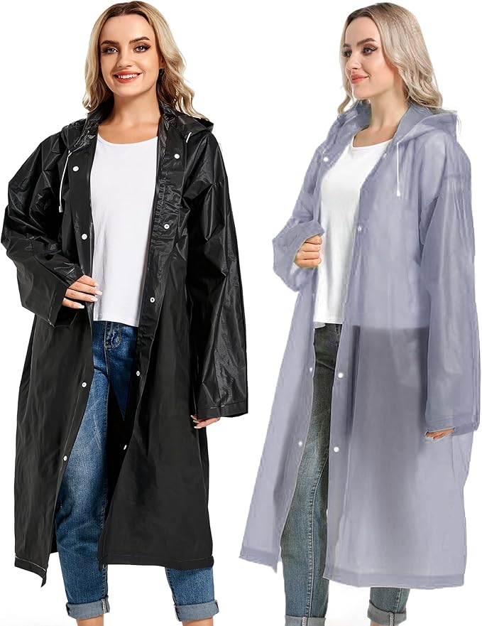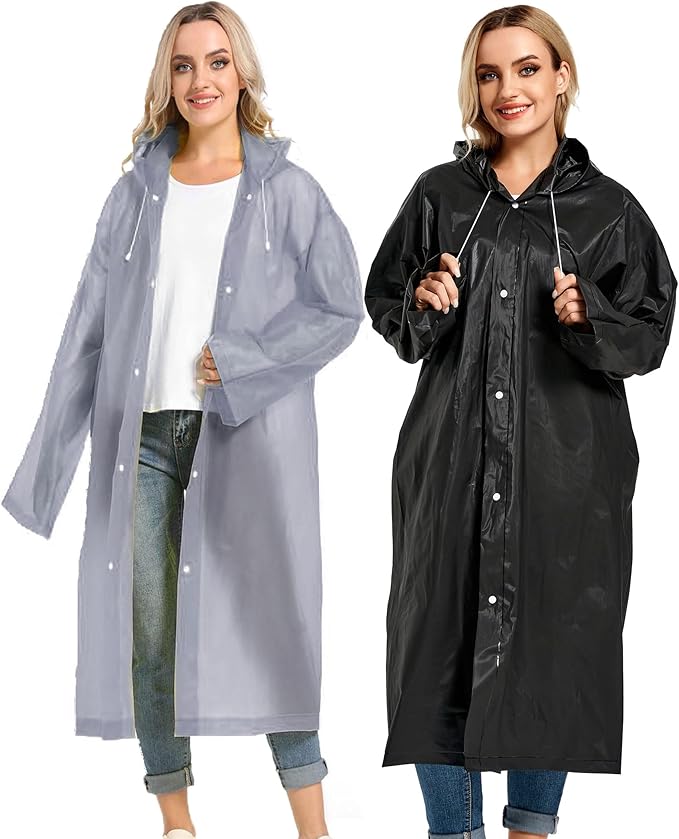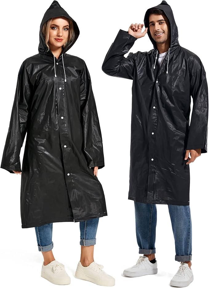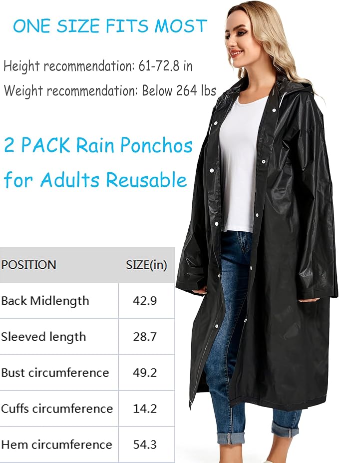 - 【PERFECT FITS MOST】Our rain poncho with long sleeves, quality button and big hood drawstring design is perfect for men, women, youth and teens,one size fits most,full-length reusable rain coat with a drawstring hood and long sleeves ensure water does not get in, a rain gear won't stick you but keep you dry