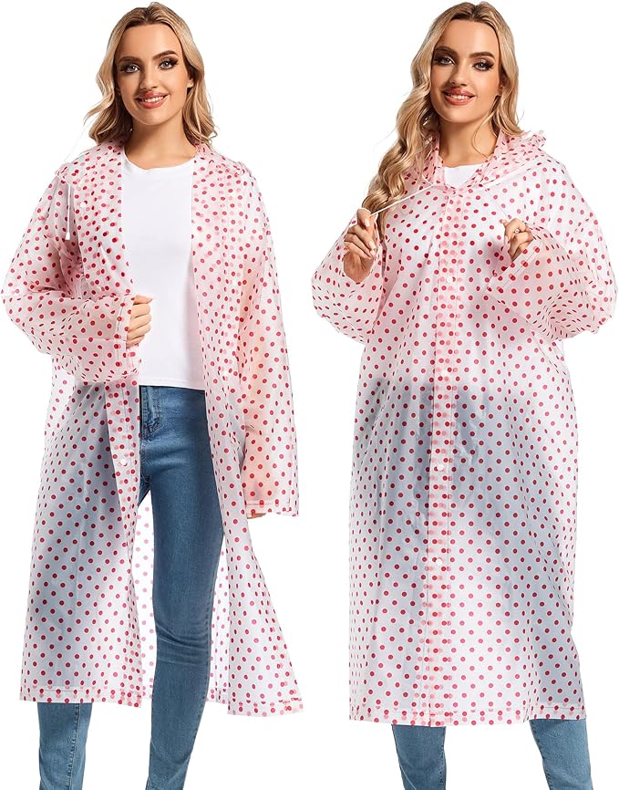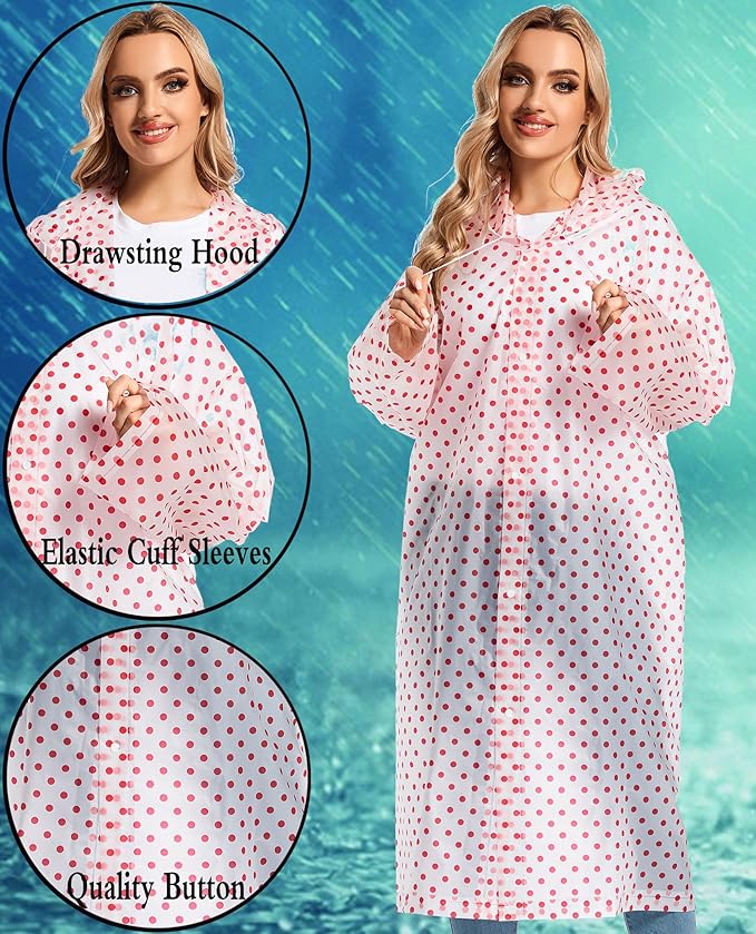 - 【PERFECT FITS MOST】Our rain poncho with long sleeves, quality button and big hood drawstring design is perfect for men, women, youth and teens,one size fits most,full-length reusable rain coat with a drawstring hood and long sleeves ensure water does not get in, a rain gear won't stick you but keep you dry