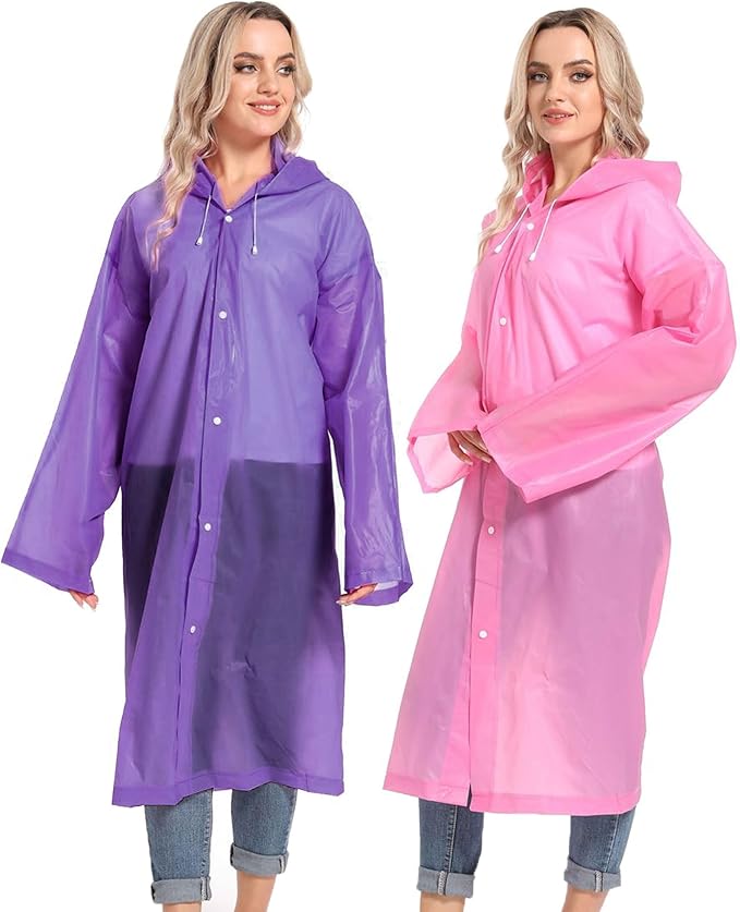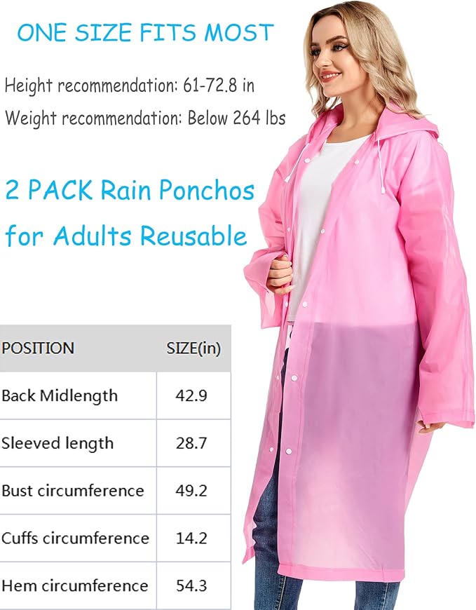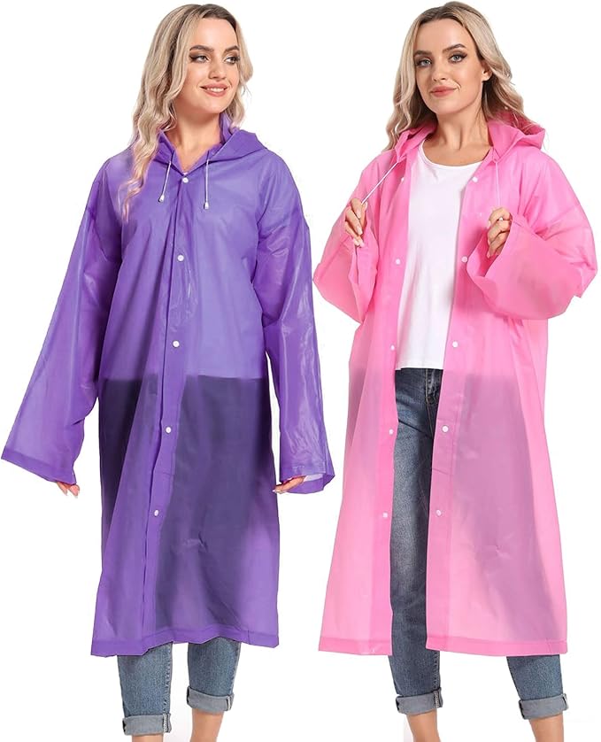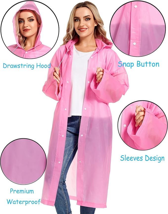 - 【PERFECT FITS MOST】Our rain poncho with long sleeves, quality button and big hood drawstring design is perfect for men, women, youth and teens,one size fits most,full-length reusable rain coat with a drawstring hood and long sleeves ensure water does not get in, a rain gear won't stick you but keep you dry