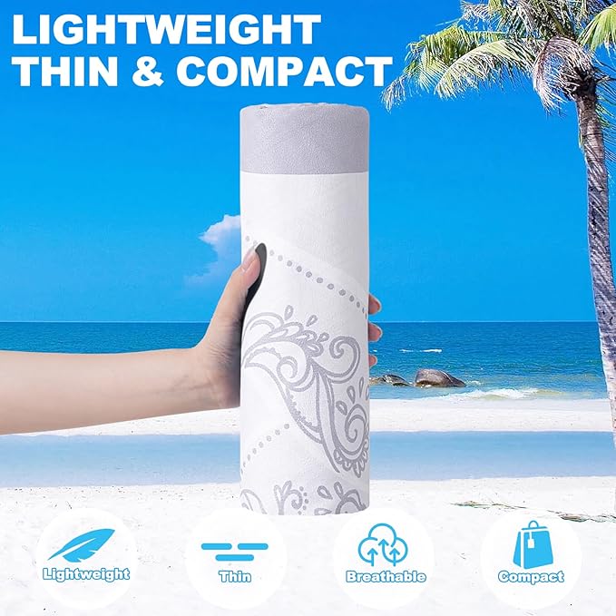 - 【Lightweight & compact】: Our microfiber beach towel is incredibly lightweight and compact, making it easy to pack and carry in a beach bag, backpack, or suitcase. It won't take up too much space or add any excess weight to your luggage.