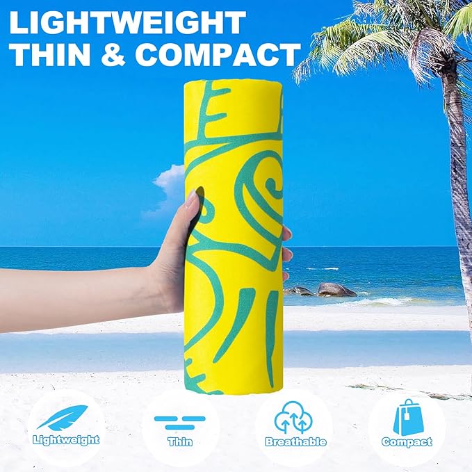 - 【Lightweight & compact】: Our microfiber beach towel is incredibly lightweight and compact, making it easy to pack and carry in a beach bag, backpack, or suitcase. It won't take up too much space or add any excess weight to your luggage.