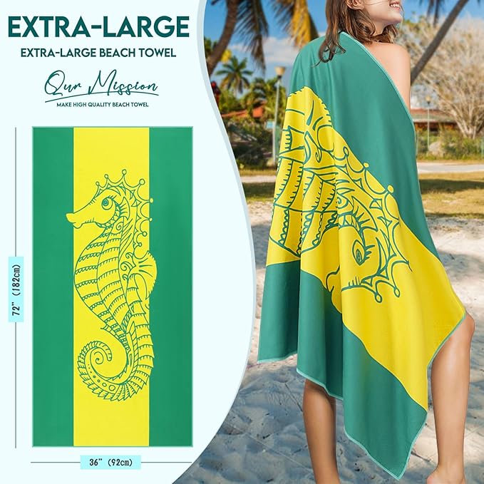- 【Extra-large size 72"x36"】: Our microfiber beach towel is designed to be larger than a standard beach towel, providing ample space for you to relax and unwind. Measuring approximately 72 inches by 36 inches, it's perfect for those who want plenty of space to spread out and soak up the sun.