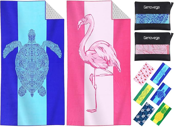 2 Packs Microfiber Oversized Lightweight Thin Beach Towel Compact Sandproof Quick Dry Clearance Towels Extra Large Sand Free Pool Travel Essentials Accessories Women Men Adults Gifts Turtle Flamingo