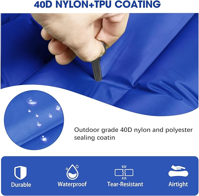 - 【Tough Nylon & Super Comfortable】Camping sleeping pad made of outdoor grade material nylon and inner TPU sealing coating, long - lasting, hard wearing, no tearing and easy to clean. Ergonomic design allows you to sleep soundly even in rough outdoor environments.