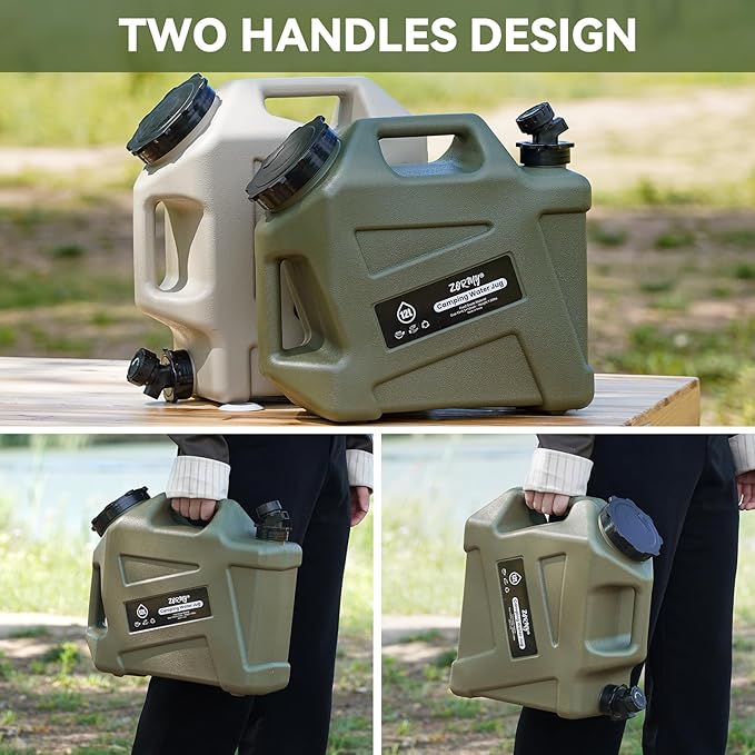 - 【Easy to Use And Carry】Just open the air plug in the water storage containers, and water will gush out, achieving the need for quick access to water. The nozzle of the camping water jug with spigot can control the speed of water flow. The compact size and easy to carry handle of the portable water container for camping make it easy to carry, and a 3 to 5-gallon water jugs for camping is the optimal capacity for one person to easily remove and load onto the vehicle for storage.