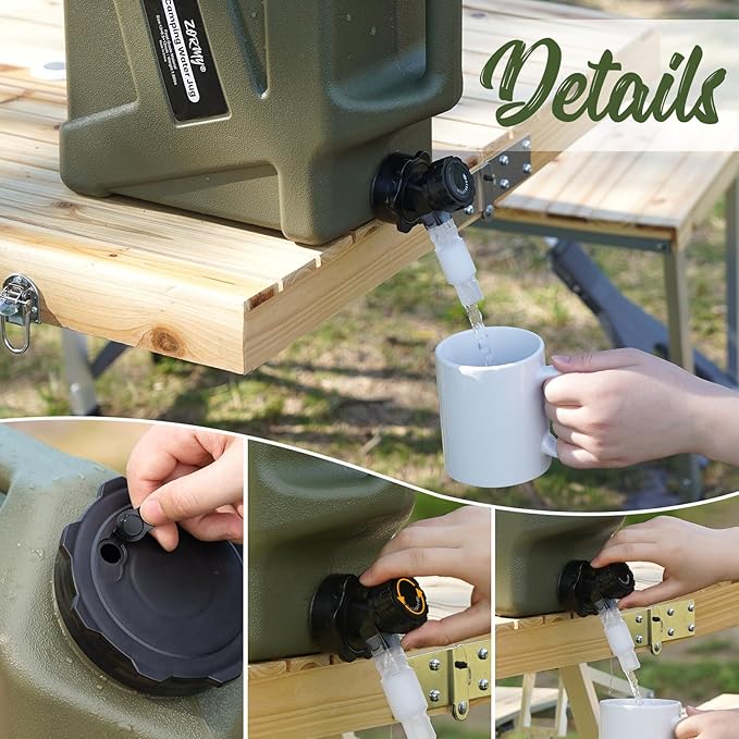 - 【Anti Leakage Design】The water jug with spout has two spiral top covers, both of which have detachable washers. There is a spiral valve that also includes a detachable gasket.The water containers for camping structure is very sturdy, with each component sealed with silicone, ensuring a safe seal to prevent any leakage or overflow.