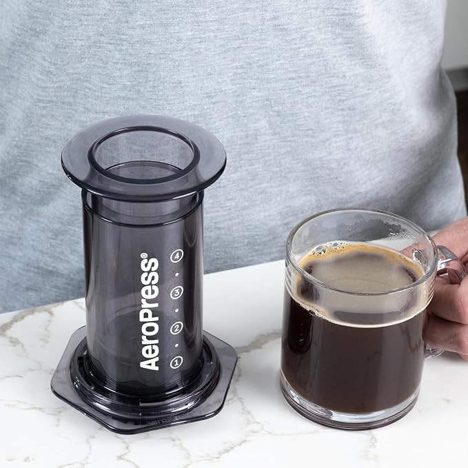 - BETTER THAN FRENCH PRESS: No more bitterness or grit; The patented 3-in-1 brew technology of the AeroPress Clear Coffee maker eliminates bitterness and acidity and creates a smooth, rich, full-bodied cup of coffee; Paper or metal micro-filters allow you to use finer ground coffee for a faster brew time and no grit (unlike the mesh filter of a French press); No more messy coffee grounds – clean-up takes seconds! Durable, shatterproof design, perfect for travel, camping & gifting