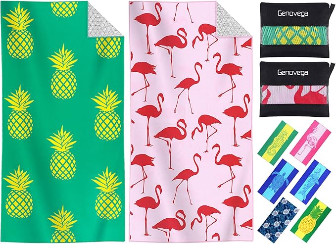 2 Packs Microfiber Oversized Lightweight Thin Beach Towel Compact Sandproof Quick Dry Clearance Towels Extra Large Sand Free Essentials Accessories Women Men Adults Gifts Little Pineapple Flamingos