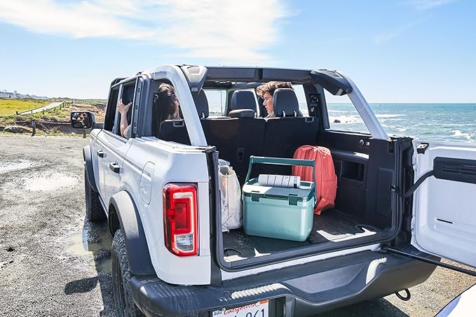 - EASY TO TRANSPORT: The heavy-duty top handle makes this cooler easy to grab and carry. The strings along the top can hold down a bottle or thermos giving you an extra free hand. It's large yet light, weighing only 6.6lbs when empty.