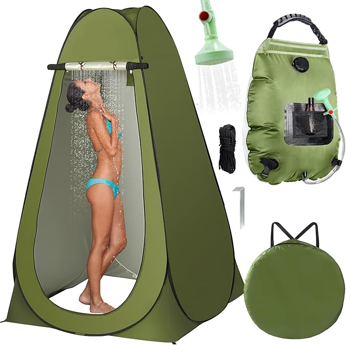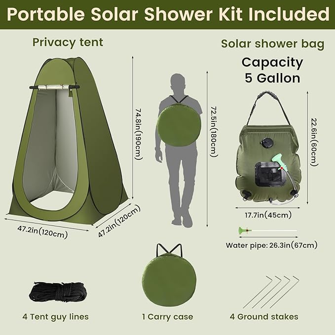 Solar Shower Tent Kit, Pop Up Privacy Tent Camping Shower Tent Kit Instant Pop Up Privacy, 5 Gallon Solar Shower Bag, Sun Canopy Beach Outdoor Camp Privacy Tent