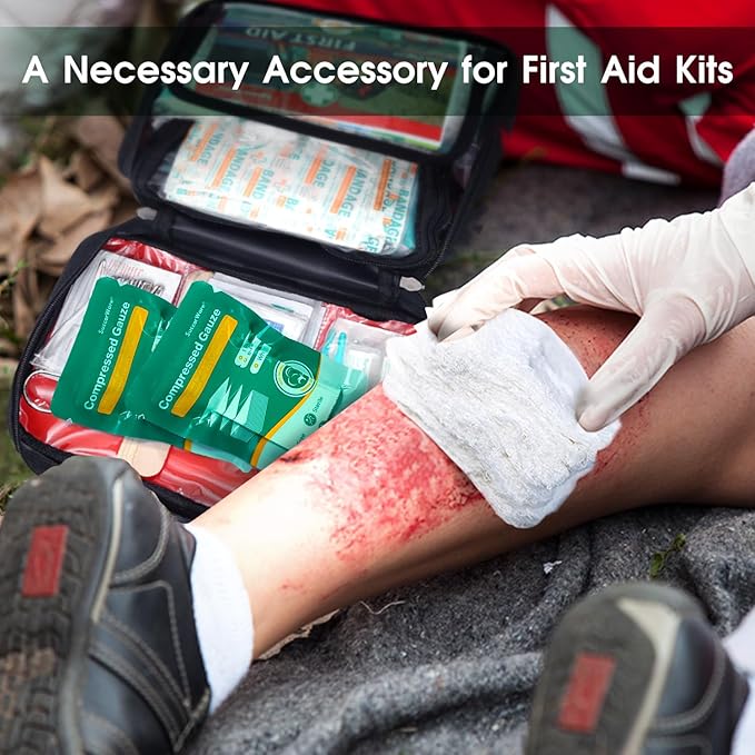 - SURPRISE ITEM - We don't know when the unexpected will come, so it's important to be prepared at all times. compressed gauze as a first aid accessory is perfect to give to a friend or family member in case of an emergency. We are confident that the product will not disappoint you, it is customized for bandaging emergency wounds.