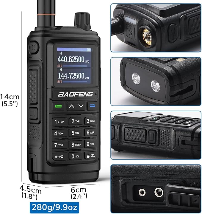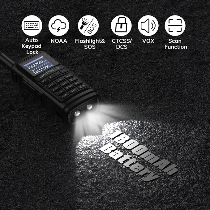 - UHF/VHF Two-Way Radio: TX: 144-148MHz and 420-450MHz, and RX: 136-174MHz and 400-519.995MHz, as well as NOAA and FM reception. You can communicate across various frequency ranges, ensuring you stay connected in diverse environments.