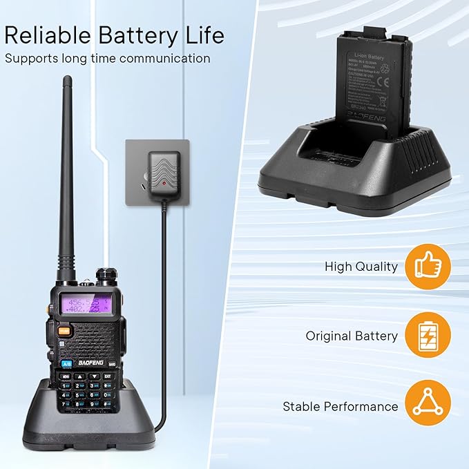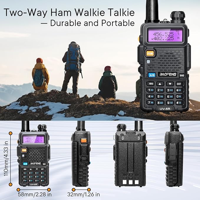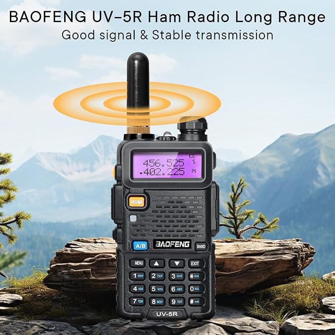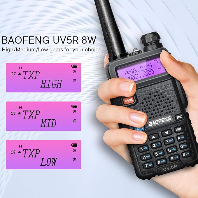 - Excellent Performance: ① Simple and practical: UV-5R radio has a simple design and is easy to use. The 8W handheld radio not only maintains contact with your partners, but is also equipped with functions such as VOX voice control, low battery alarm, and night flashlight, which can ensure your location and safety. ② Wide signal range: the communication distance in open areas can reach 10 miles, and the communication distance in multi-building areas can reach 3 miles.