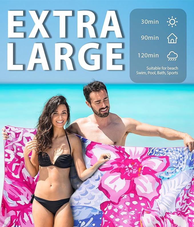 - ☀️[ Microfiber Lightweight ] High quality microfiber that absorbs water much faster than ordinary fabric! Eco-friendly, no faded and no smell. You can easily take it portable to avoid wet and cold on the beach. Multiple size options perfect for all adults and children.