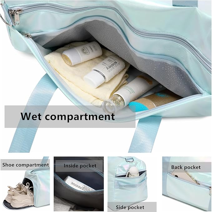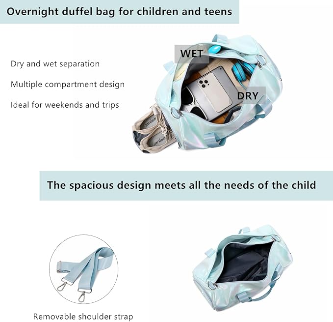 - Dry Wet Separate Pockets:This Kids Weekender Bag Delivers Spaci Ous Storage With 1 Large Main Zippered Compartment For Dry & Clean Clothes Or Everything For Gym & Traveling, You Necessary, And 1 Large Waterproof Pvc Pocket With Zipper, For Wet Items. Additional Storage Pockets To Organize Your Items And Gym Accessories.