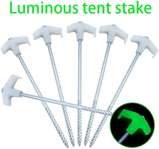 - Fluorescent White Plastic Tops: Our tent stakes come with fluorescent white plastic tops that glow in the dark, enhancing visibility during night-time camping or outdoor activities. These illuminating stakes ensure added safety and convenience.