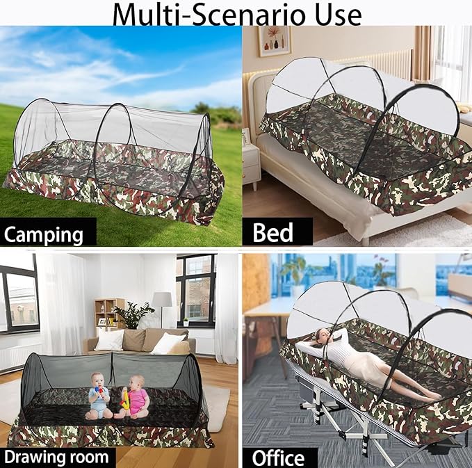 CMINGJ Portable Mosquito Net Foldable Pop-Up Travel Mosquito Net for Bed Free Installation-Suitable for Baby Adults Bedroom, Camping, nap, Patio (Extra-Large-Bottom Zipper(Black&Camouflage))