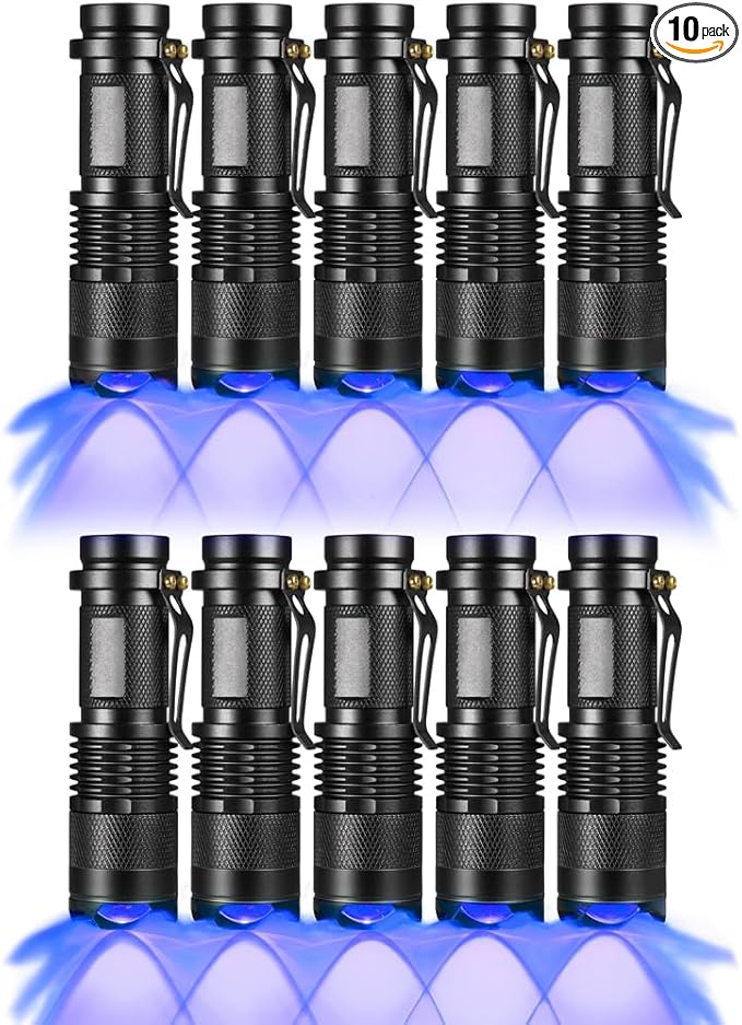 - Ten flashlights are included in the package. The blue flashlight is equipped with powerful 3535 Blue LED bulb, it emits the True Blue light in the wavelength of 460nm-470nm.