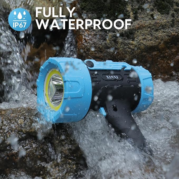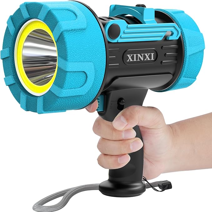 XINXI 1000,000 Lumens Rechargeable Spotlight with COB Floodlight, 6 Light Modes and USB Charger for Hiking, Boating, Hunting, IP67 Waterproof Handheld Flashlight with red Filter(BLUE)