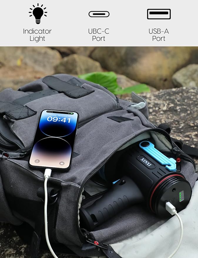 - WHAT YOU GET: XINXI High Quality Outdoor Spotlight, welcome guide, USB charging cable, red lens, hand strap, removable holder and our 2 years after-sales service. If you receive defective products, please contact us as soon as possible, we will immediately replace you with a brand new spotlight. Even if the Amazon return window is closed, we will provide you with perfect after-sales service.