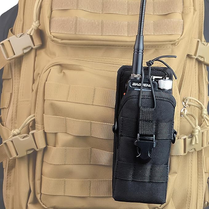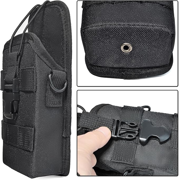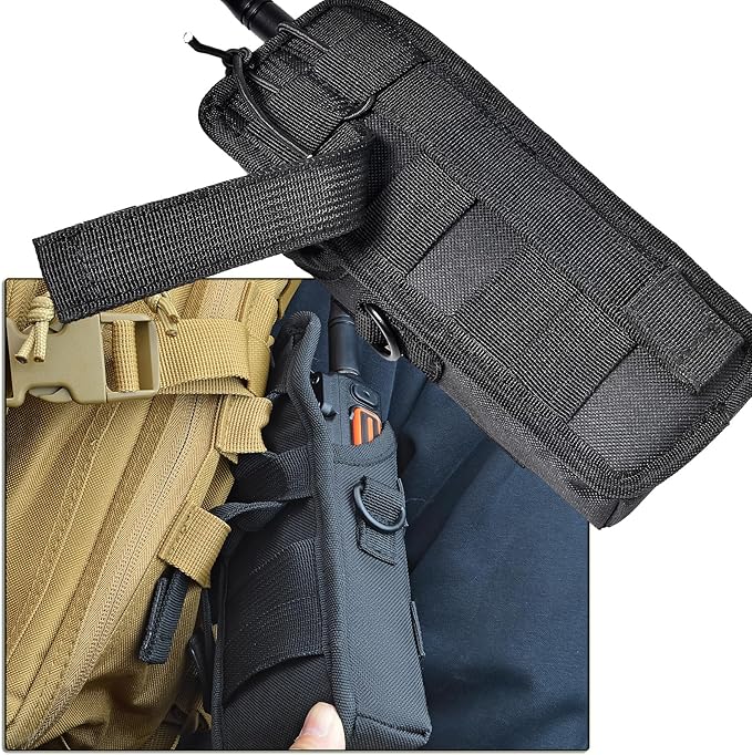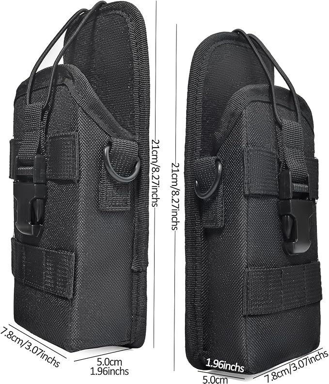 - HYS MOLLE pouch designed to help professionals and tactical enthusiasts organize and access their gear easily. The pouch accommodates a wide range of contents like phones, walkie talkie, two way radio and handheld GPS device. This radio case is built to withstand even the toughest conditions, making it ideal for outdoor adventures, camping trips, and more.