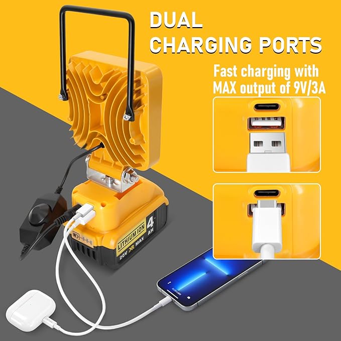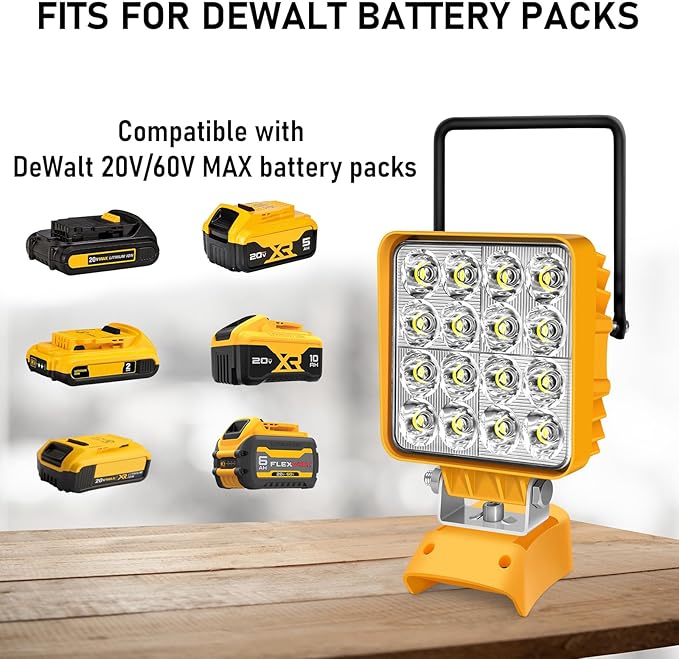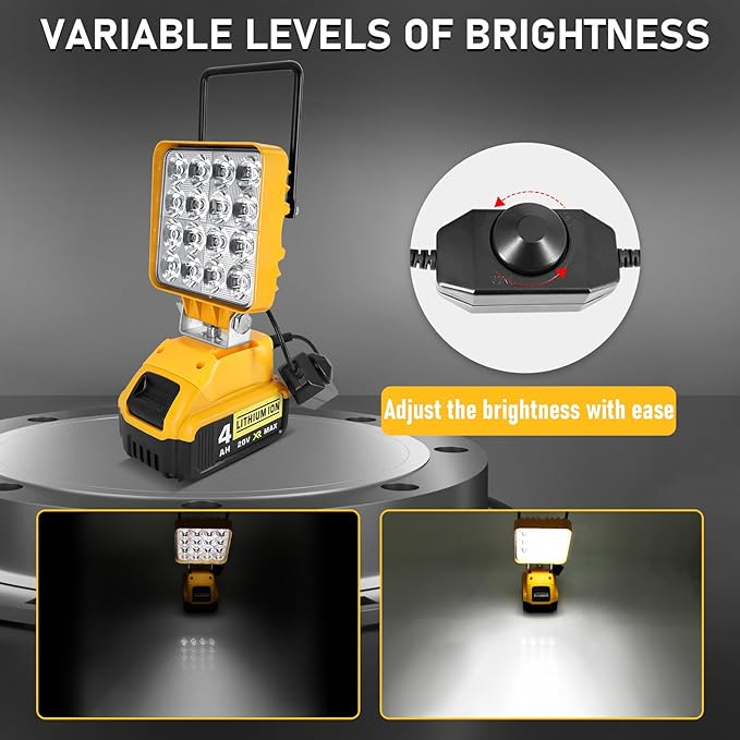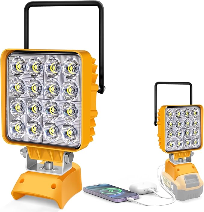 Portable LED Work Light for Dewalt 20v Battery,Dewalt Battery Light with Power Functionality and Rotating Stand,Rechargeable Flood Light,48W 4800LM Flashlight for Garage & Jobsite Lighting