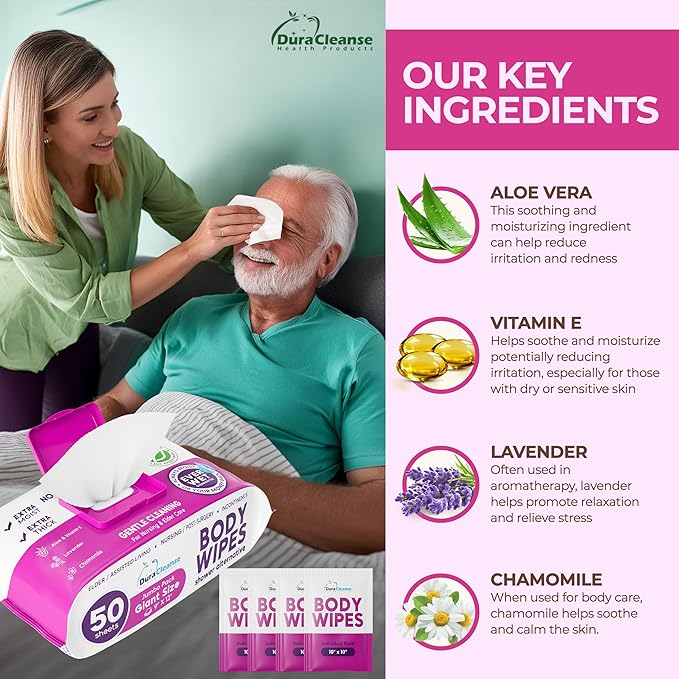 - Enhanced Incontinence Care: These incontinence wipes are perfect for adult wipes for elderly. They assist with adult incontinence, offering superior hygiene. The extra large, disposable washcloths for adults make for great incontinence products, providing thorough and gentle cleaning. Add our wipes to your collection of elderly assistance products.