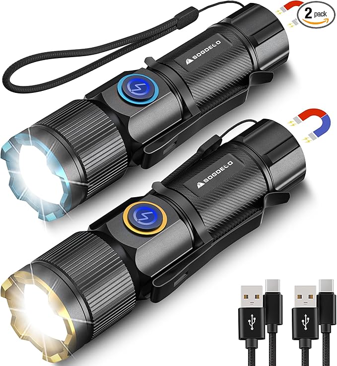 - 【Value & Risk-Free Purchase】The emergency flashlight set includes (2) EDC flashlights, (2) rechargeable batteries, (2) charging cables, (2) lanyards, (2) belt clips, and (1) user guide. Designed for ease and comfort, Sogdeco is your go-to light source, backed by a 2-year replacement warranty and 24/7 customer support. Enjoy peace of mind with this practical investment!