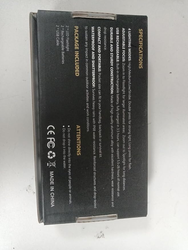 - 【4 Lighting Modes & Zoomable】Navigate through darkness with ease using our LED flashlight's 4 powerful modes: High, Medium, Low, and SOS. Instantly switch to High with a double-click, without having to go through all modes; Long-press activates Strobe mode (self-defense). Adjustable zoom allows floodlight or spotlight: zoom in for close work, out for long distance.