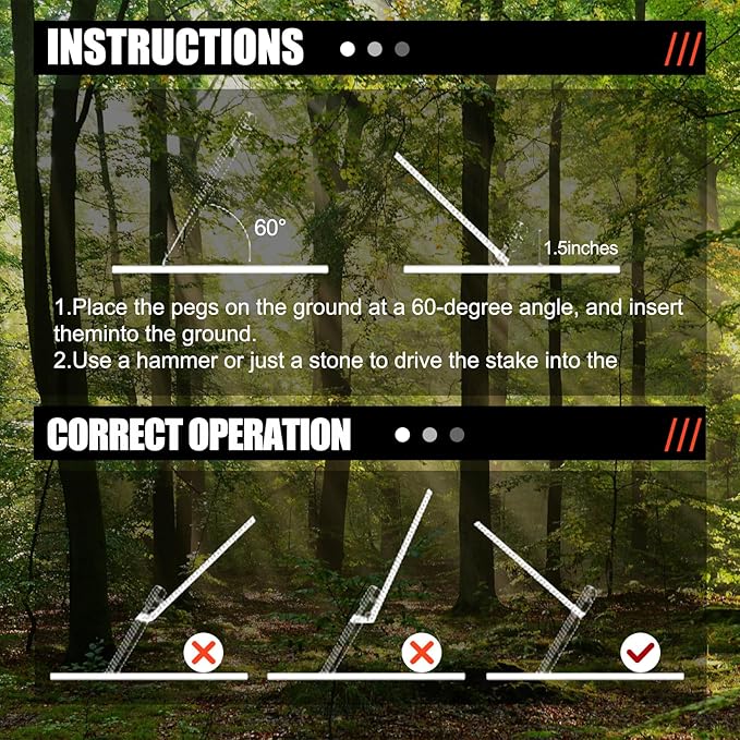- Easy Installation: Featuring an ergonomic design with pointed tips, our tent pegs allow for easy insertion into various terrains. The sharp edges provide a secure grip while minimizing the effort required for installation. Say goodbye to struggling with flimsy stakes that bend or break under pressure - our premium tent pegs are built to withstand the rigors of outdoor conditions.