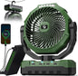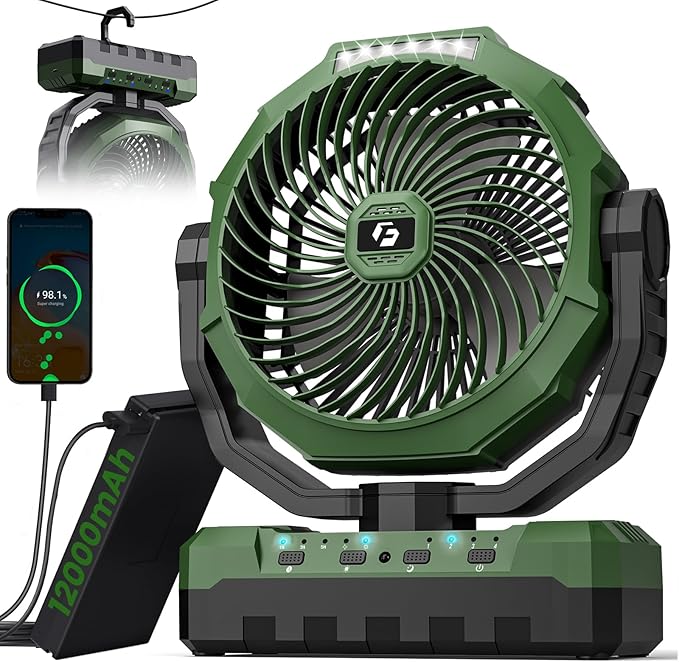 FRIZCOL 3-in-1 Camping Fan - Portable Fans Rechargeable - 12000mAh 9-Inch Battery Powered Fan(70Hrs) with Light & Remote for Indoor, Outdoor, Tent, Travel, BBQ, Fishing, Jobsite - Green
