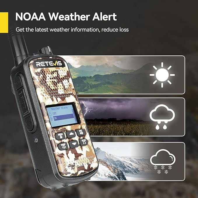 - NOAA; GMRS walkie talkie supports NOAA function; helping you receive heavy rain/typhoons and other severe weather; ensuring your safety outdoors