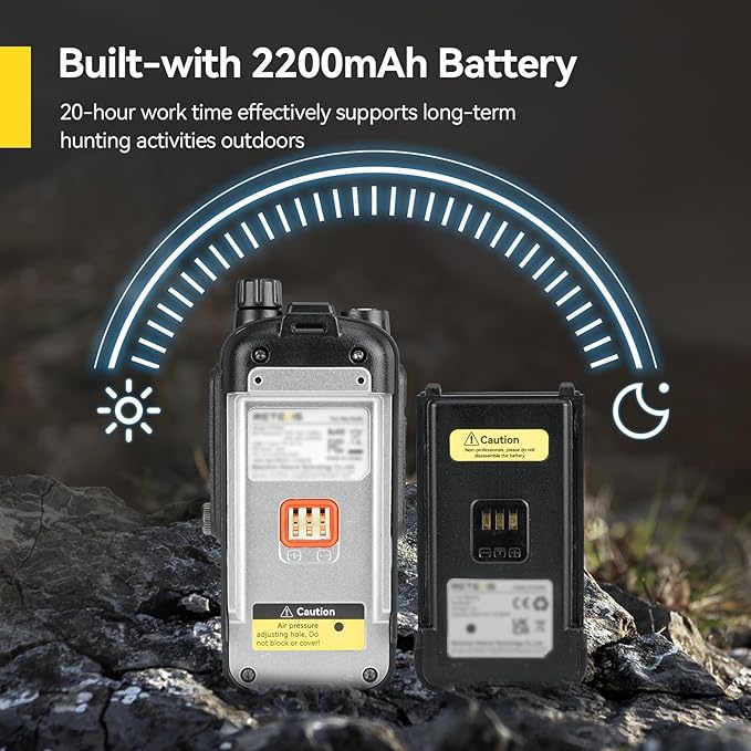 - Built-with 2200mAh lithium battery; up to 20 hours of work time and 68-hour standby time; hunting walkie talkies support long-term hunting activities without frequent charging
