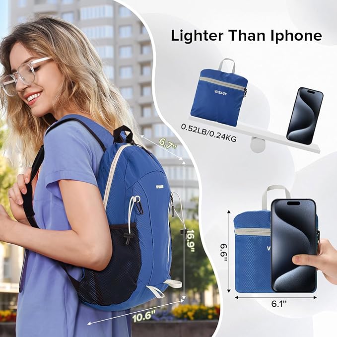 • Foldable into a Pouch and Compact : When not in use, hikers can easily fold the small backpack into its inner pocket, as small as a palm, which can be easily packed into your bag or suitcase, providing additional storage space to carry extra gear or souvenirs