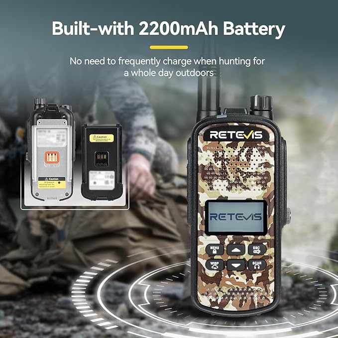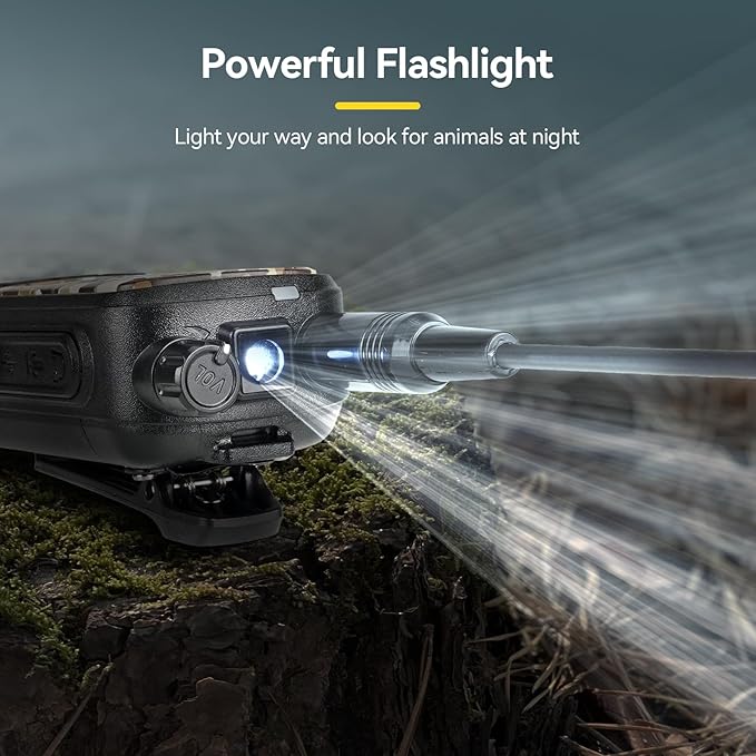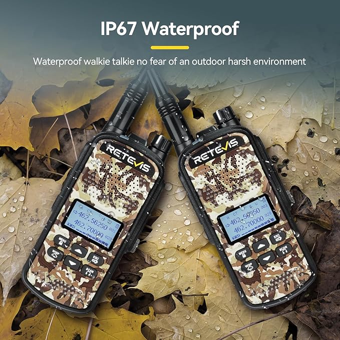 - Waterproof walkie talkie; rated IP67 allows users to use hunting gear conveniently on outdoor activities; such as hunting/camping/adventures