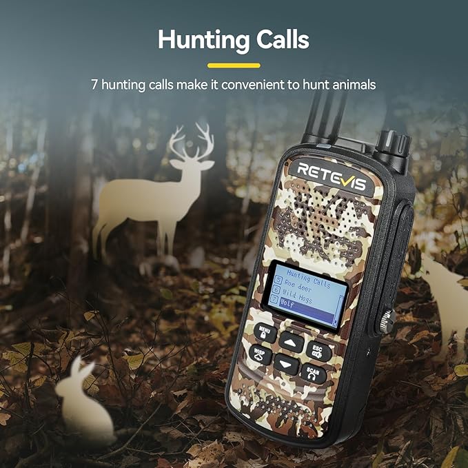 - 7 hunting calls; hunting two way radio has elk/buck/duck/hare/roe deer/wild hogs/wolf hunting calls; choose similar calls with the targeted animals to access them; efficient to hunt the animals successfully