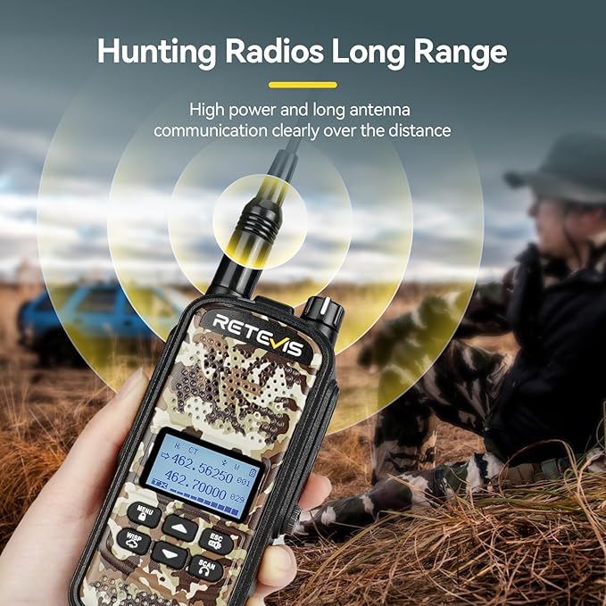 - Hunting walkie talkies long range; the power is up to 5W; and equipped with a long antenna; enabling hunters to communicate clearly at the edge of the signal; included 8 relay channels extend the communication distance by connecting the base station