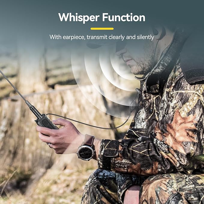 - Whisper function; offers efficient and discreet communication for outdoor activities use; making hunting/camping/adventure safer