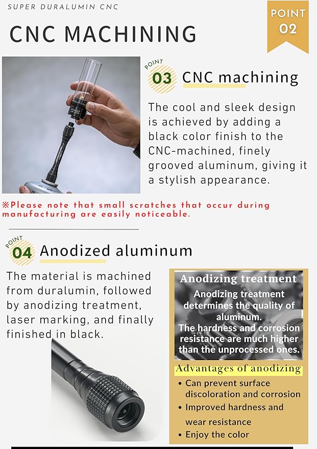 - 【CNC machining】The cool and sleek design is achieved by adding a black color finish to the CNC-machined, finely grooved aluminum, giving it a stylish appearance.