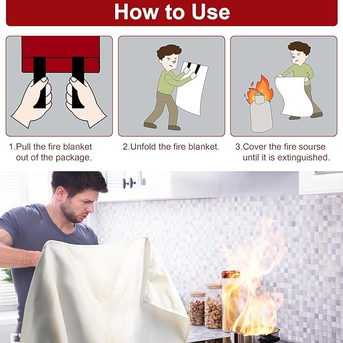 - Portable and Storable: The fire suppression blanket is compact and lightweight, making it very easy to carry and store. It is recommended to put one in the kitchen, fireplace, office, backyard, camping and grill to provide full protection.