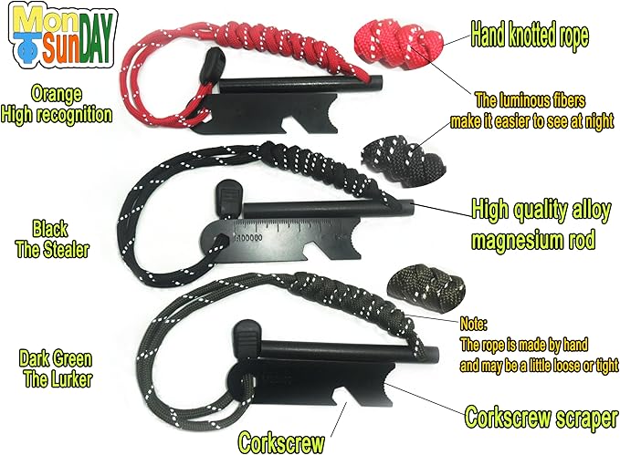 - 🔥Welcome To the MonDAY To SunDAY brand, a traditional outdoor emergency fire making tool with a diameter of 8mm (0.32 inches), a length of 80mm (3.2 inches) and a weight of about 70g. We have used a miniaturized design while ensuring the basic function, which will free up more space in your backpack.