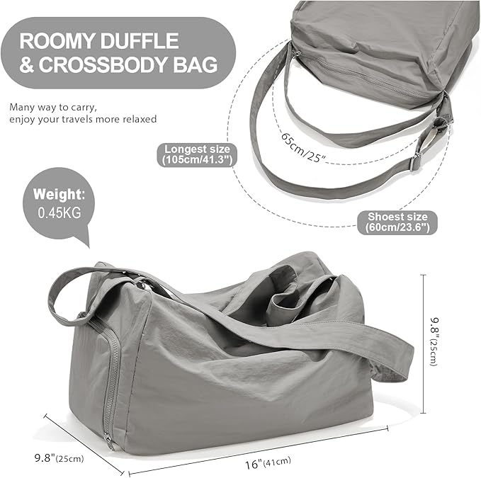 • Multifunctional: Can be used as a crossbody bag, laptop bag, gym bag, swim bag, dance bag, duffle bag, casual shoulder bag or travel bag. Suitable for work, study, travel, shopping, fitness and other occasions.