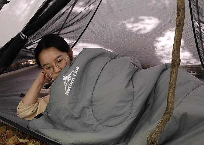 - WARM AND LIGHTWEIGHT: This Envelope sleeping bag is filled with 235g/㎡soft imitation silk cotton insulation, provides a comfortable temperature rating of 46℉-59℉. Weighs just 2.6 lbs, can be compressed down to 12” in height. It rolls up small and comes with a handy stuff sack.