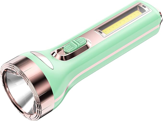 LED Flashlights, Bright Flashlights for Emergencies, Camping, Hiking, Walking, 3 Modes Flash Light with COB Work Light, Capable to Recharge Mobile Devices,fl-LL-5898-g-n