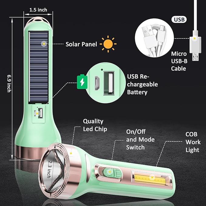 - [IP65 Waterproof]: Designed to withstand different weather conditions such as rain, and sun. Can be used as an emergency flashlight or for general use.
