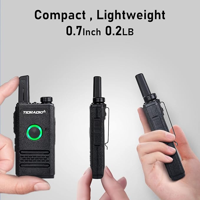- Pocket size: compact and light weight allow the two way radio easily put into the pocket and easy to carry all day.